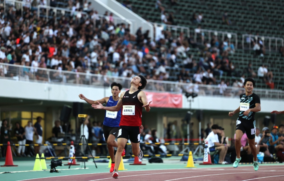 决赛在和小池祐贵、多田修平、山县亮太这些老对手的死斗中,柳田跑出了10秒00。